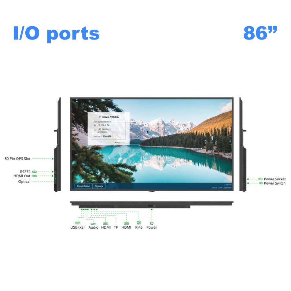 NovoDisplay Monitor 4K 86 pollici, dotato di sistema di collaborazione e per l’informazione di prossimità. Comprensivo di staffa per montaggio a parete. 3 anni garanzia
